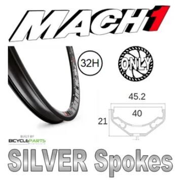 WHEEL - 27.5/650B Mach1 Trucky-40 32H P/j Black Rim, 8/11 SPEED 12mm T/A (148mm OLD) Centerlock Disc Sealed Novatec BOOST Black Hub, Mach 1 SILVER S