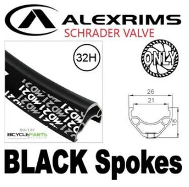 WHEEL - 29er Alex MD21 32H P/j Black Rim with Eyelets, Schrader Valve, 8/11 Speed Q/R (141mm OLD) 6 Bolt Disc Sealed Novatec Black Hub, BLACK Spokes
