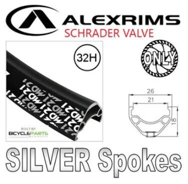 WHEEL - 29er Alex MD21 32H P/j Black Rim with Eyelets, Schrader Valve, FRONT Q/R (100mm OLD) Centerlock Disc Sealed Novatec Black Hub, SILVER Spokes