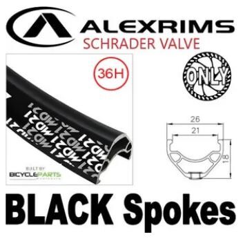 WHEEL - 29er Alex MD21 36H P/j Black Rim with Eyelets, Schrader Valve, 8/11 SPEED Q/R (135mm OLD) 6 Bolt Disc Sealed Novatec Black Hub, BLACK Spokes