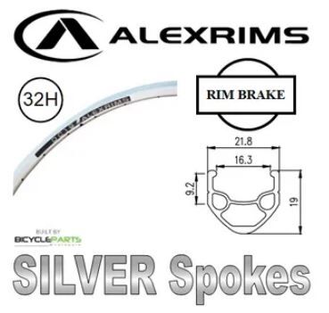 WHEEL - 700C Alex DC19 32H P/j Silver Rim, FRONT TRACK 3/8 Nutted (100mm OLD) Sealed Novatec Silver Hub, SILVER Spokes