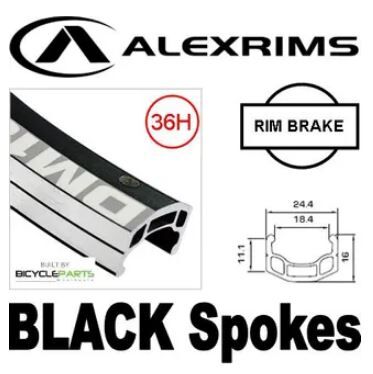 WHEEL 700C Alex DM-18 Black DW Rim , Silver Q/r Alloy Hub , BLACK Mach 1 Spokes , FRONT .